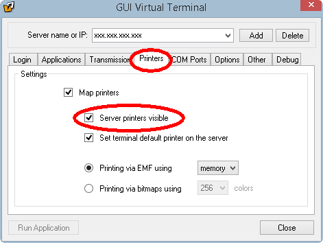 Prvo treba na klijentskoj strani uključiti opciju da budu vidljivi štampači servera, kao na slici.