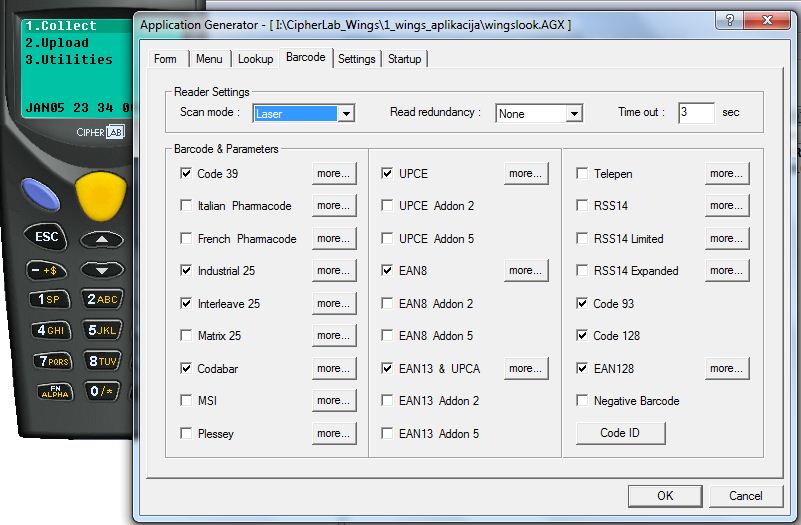 NAPOMENA: Ako u programu postoje i barkodovi sa 12 cifara, treba uraditi sledeće: pre nego da pošaljete aplikaciju na uređaj u koraku br. 2, treba odabrati tab Barcode, i u sredini, poslednja opcija 'EAN13 & UPCA' treba da se klikne na 'more' pored i isključi opcija 'Convert UPCA to EAN13'. Tek posle toga treba da se pošalje aplikacija na uređaj.