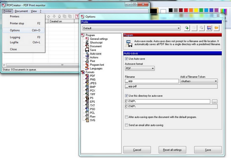 Posle toga Printer→printers pa napraviti novi printer PDFCreator, Add Printer i sa desne strane staviti New Profile 1. Save.