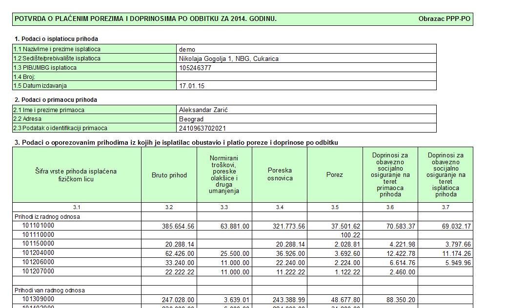 Novina je obrazac PPP-PO koji treba izdati svakom radniku najkasnije do 31. januara ove godine. PPP-PO sadrži rekapitulaciju isplata po šiframa prihoda. Ovaj obrazac dobijate tako što u tabeli radnika u PPP pomerite kursor na željenog radnika i aktivirate komandu F6/PPP-PO.