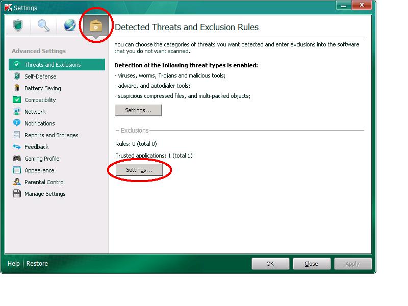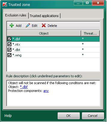Ovde dodati ekstenzije koje ne treba skenirati. Izgleda da mora za svaku ekstenziju posebno, nigde u helpu Kasperskog nisam našao šta je separator.