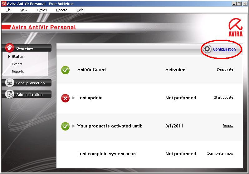 Nakon startovanja programa na glavnom prozoru kliknuti na Configuration, ili pritisnuti F8 na tastaturi.