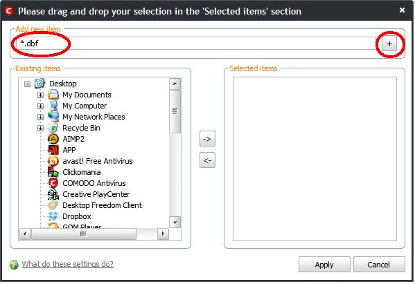 U polju Add new item upisati ekstenzije i putanje do fajlova koje ne treba skenirati pa kliknuti na + .
