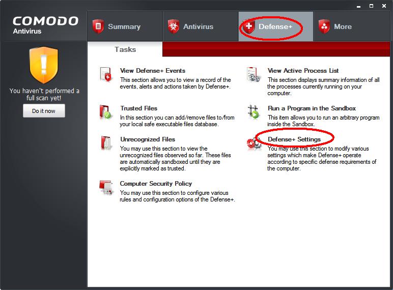 Vratićemo se na osnovni prozor pa izabrati tab Defence+ i sekciju Defence+ Settings
