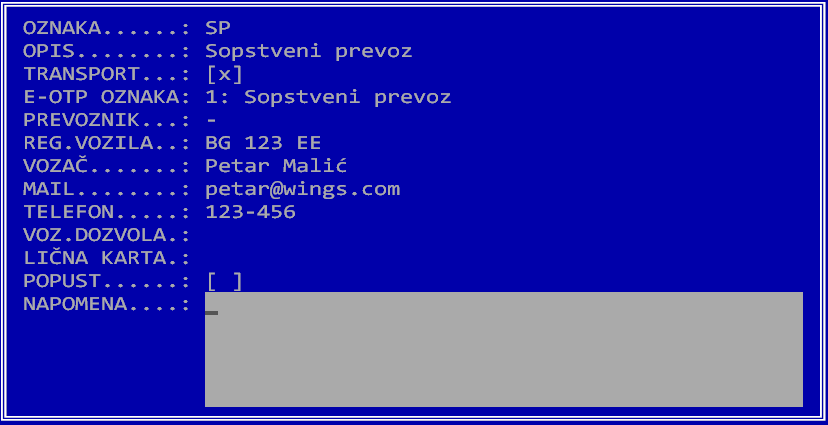 U nastavku se unose podaci za prevoznika, vozilo i vozača. Ovi podaci nisu obavezni, a ako se unesu, automatski će se upisati prilikom slanja e-otpremnice. Nema ograničenja na broj otvorenih načina otpreme – možete ih otvarati po vozilima, vozačima ili po nekom drugom kriterijumu.