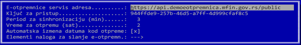– E-otpremnice servis adresa: ovde se zadaje adresa demo ili produkcionog servisa za e-otpremnice. Dobija se upozorenje ako link nije ispravan.