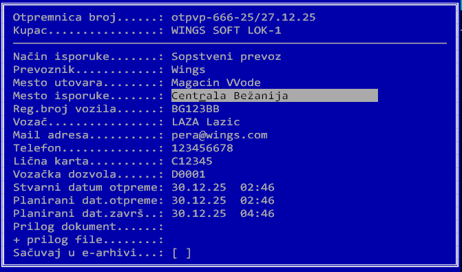 Ako na prvoj stavki tabele pritisnete F9 ili Enter, dobijate PDF oblik poslate otpremnice. Na drugoj dobijate PDF/JPG sa potpisom. Transport je počeo, čeka se prijem robe kod kupca.