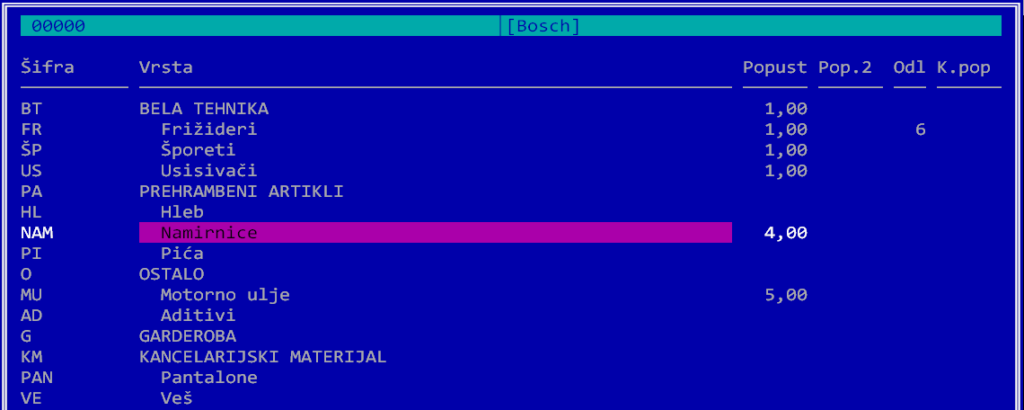 F3 – briše popust za tekuću vrstu i sve njene podvrste.